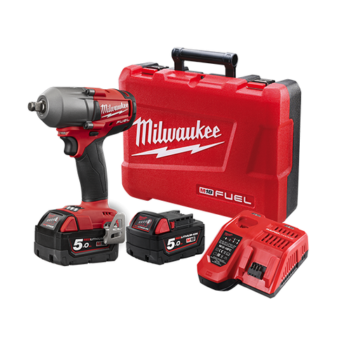 The 2863 m18 fuel w one key high torque 1 2 impact wrench with friction ring provides the most powerful most compact and the most repeatable impact wrench in the industry. The m18 fuel high torque impact wrench with one key technology delivers 1356 nm of fastening torque in a compact size of 213 mm which gives more access in tight spaces. At 6 7 in length and 5 3 lbs with a 5 0ah battery the m18 fuel mid torque impact wrench delivers the balance and weight desired by professionals for all day use. Of fastening torque and 1400 ft lbs.